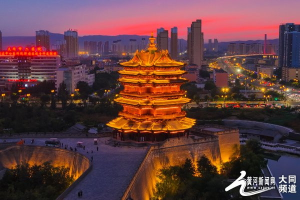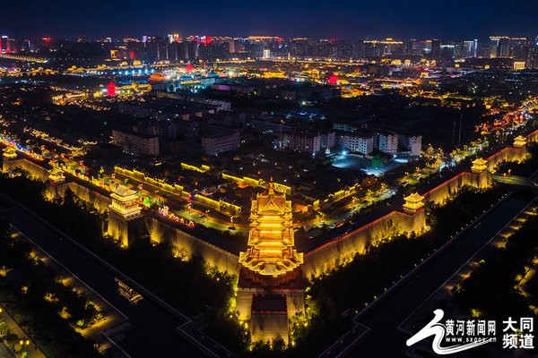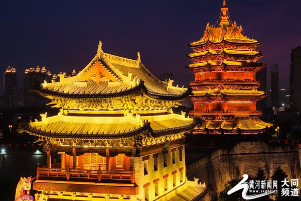 大同城墙乾楼璀璨亮灯 古今辉映再塑古城夜景新名片